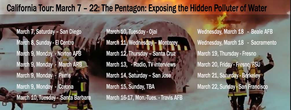 Pat Elder is an investigative journalist who has been focusing on how the military poisons people around the world. Pat’s focus is on documenting contamination caused by the U.S. military’s use of per- and polyfluoroalkyl substances (PFAS) in routine fire-fighting drills. During March 2020 he will be touring California to spread the word about this looming crisis.